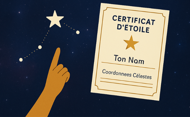 Participez à notre animation et tentez votre chance de remporter un certificat personnalisé, symbole d’un astre qui vous appartient dans l’immensité de l’univers. Une expérience poétique et unique pour repartir avec un souvenir scintillant de votre passage parmi les étoiles.